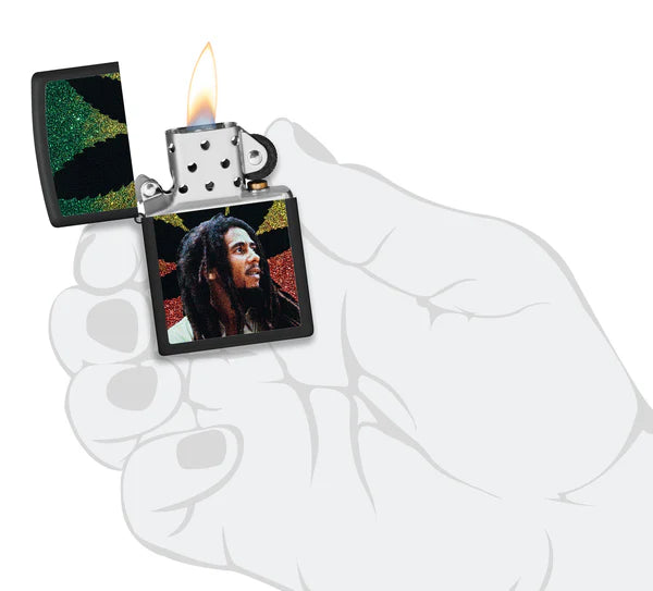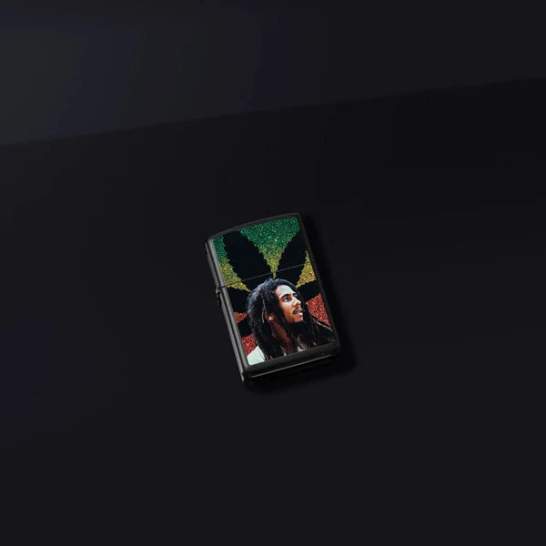Ünnepeld Bob Marley zenéjét, életét és örökségét ezzel a klasszikus fekete, matt öngyújtóval! A reggae királya egy kannabiszlevél sziluettje előtt jelenik meg a nyugtató hangulatú, színes képi megjelenítésben. Díszdobozba csomagolva érkezik. Az optimális teljesítmény érdekében töltse fel Zippo öngyújtó töltőfolyadékkal.