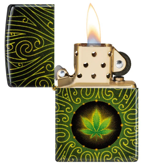 Kavarodó vonalak labirintusa fut össze egy csillogó kannabiszlevélnél ezen a klasszikus koptatott sárgaréz öngyújtón. Az 540 Fusion dizájn minden oldalon körbefut, és hagyja érvényesülni az öngyújtó házának fénylő, sárgaréz árnyalatait. Díszdobozba csomagolva érkezik. Az optimális teljesítmény érdekében töltse fel Zippo öngyújtó töltőfolyadékkal.