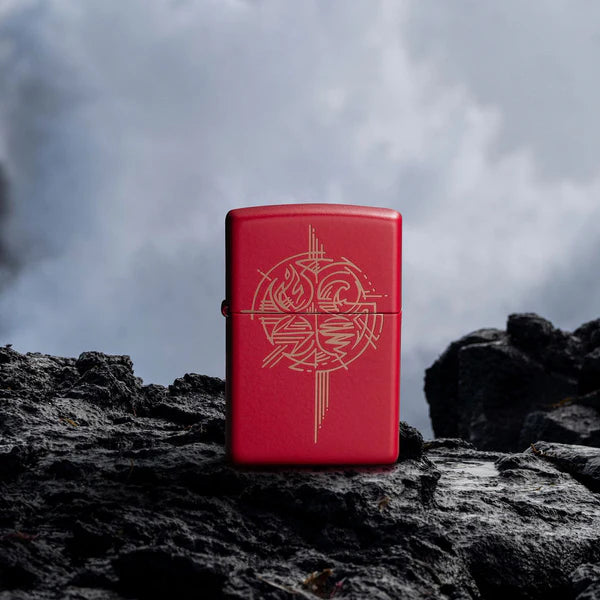 A föld, a levegő, a víz és a tűz új értelmezésben jelenik meg ezen a klasszikus, matt piros öngyújtón, egy lenyűgöző lézergravírozott dizájnban. Díszdobozba csomagolva érkezik. Az optimális teljesítmény érdekében töltse fel Zippo öngyújtó töltőfolyadékkal.