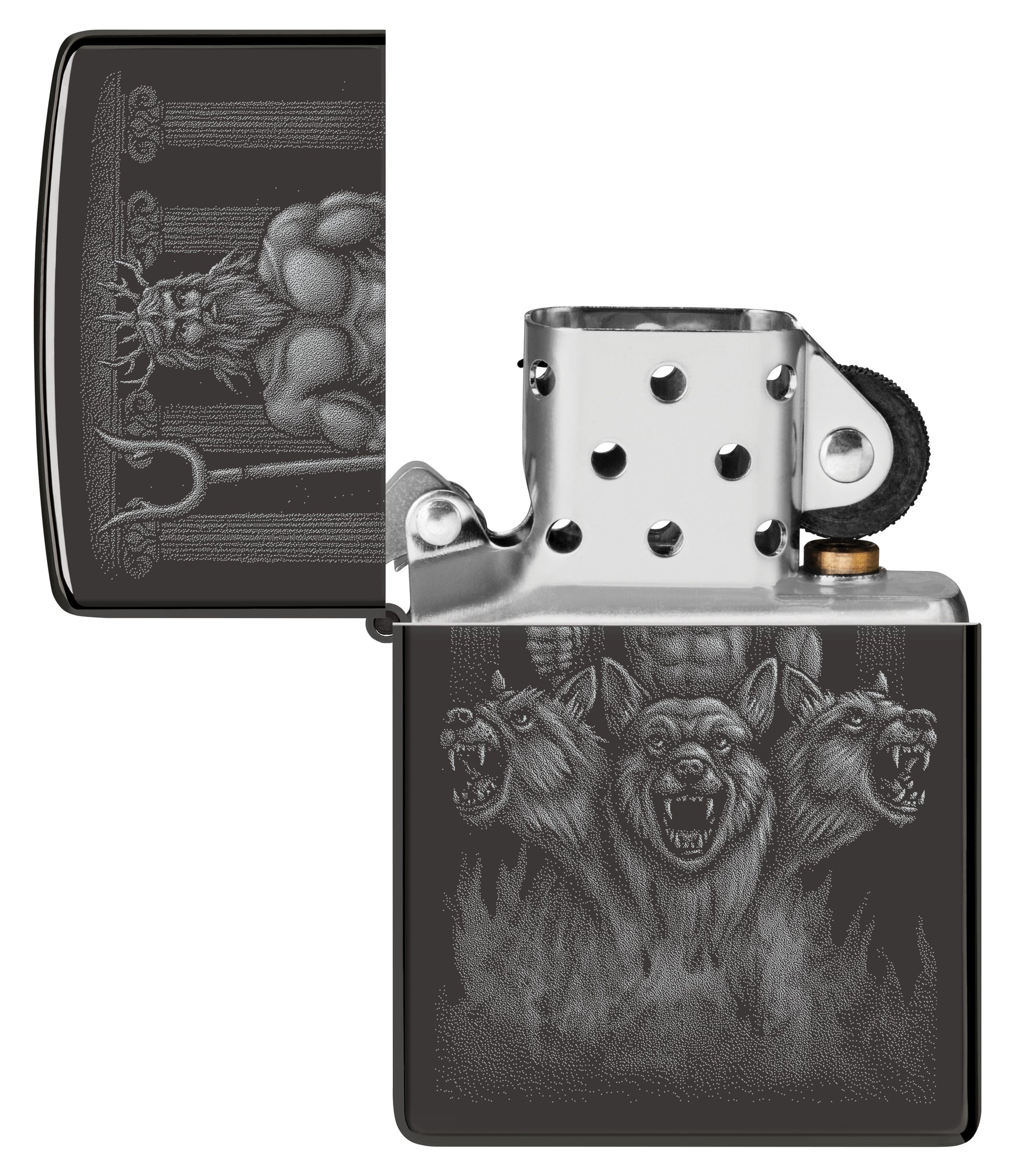 Vad őrkutyák által körülvéve áll rendíthetetlenül egy méltóságteljes isten ezen a klasszikus magasfényű fekete öngyújtón, egy erőteljes Photo Image dizájnban. Díszdobozba csomagolva érkezik. Az optimális teljesítmény érdekében töltse fel Zippo öngyújtó üzemanyaggal.