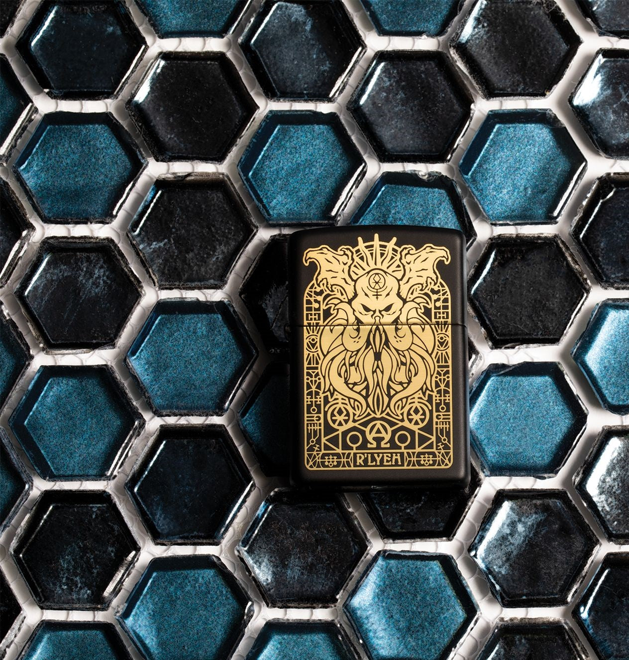 A H.P. Lovecraft 1920-as évekbeli munkássága által ihletett, kitalált kozmikus lény most egy szélálló, matt fekete öngyújtón jelenik meg. A démoni, polipszerű teremtményt lézergravírozással vitték fel a felületre. Díszdobozba csomagolva érkezik. Az optimális teljesítmény érdekében töltsön be Zippo öngyújtó töltőfolyadékot.
