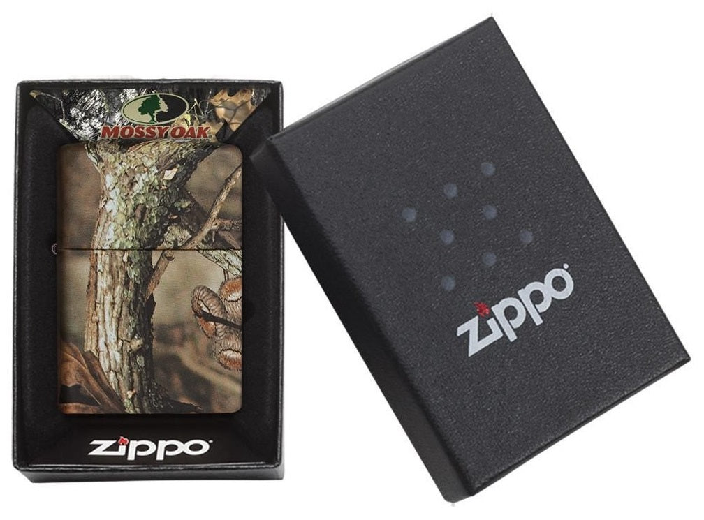 Ez a Mossy Oak® terepszínű öngyújtó egyedi Mossy Oak® dizájnnal rendelkezik az öngyújtó minden oldalán a teljes hatás érdekében. A minta minden öngyújtónál eltérő, lehet, hogy nem pontosan olyan, mint a képen. Díszdobozba csomagolva érkezik. Az optimális teljesítmény érdekében használja a Zippo prémium öngyújtó üzemanyaggal. Díszdobozba csomagolva érkezik. Az optimális teljesítmény érdekében töltse fel Zippo öngyújtó töltőfolyadékkal.