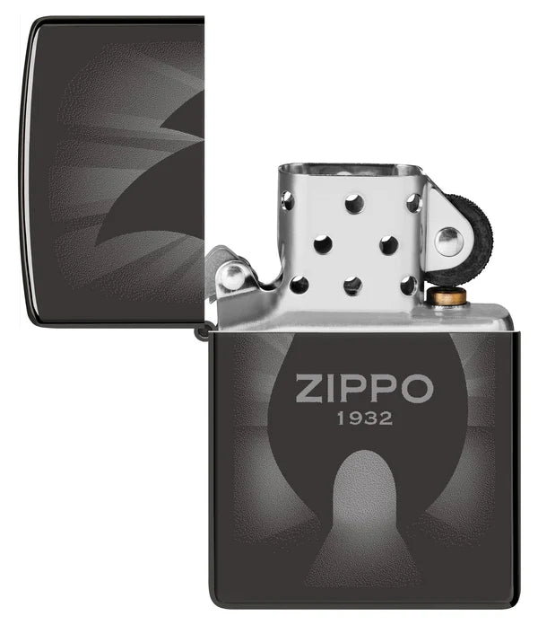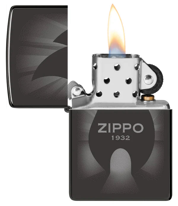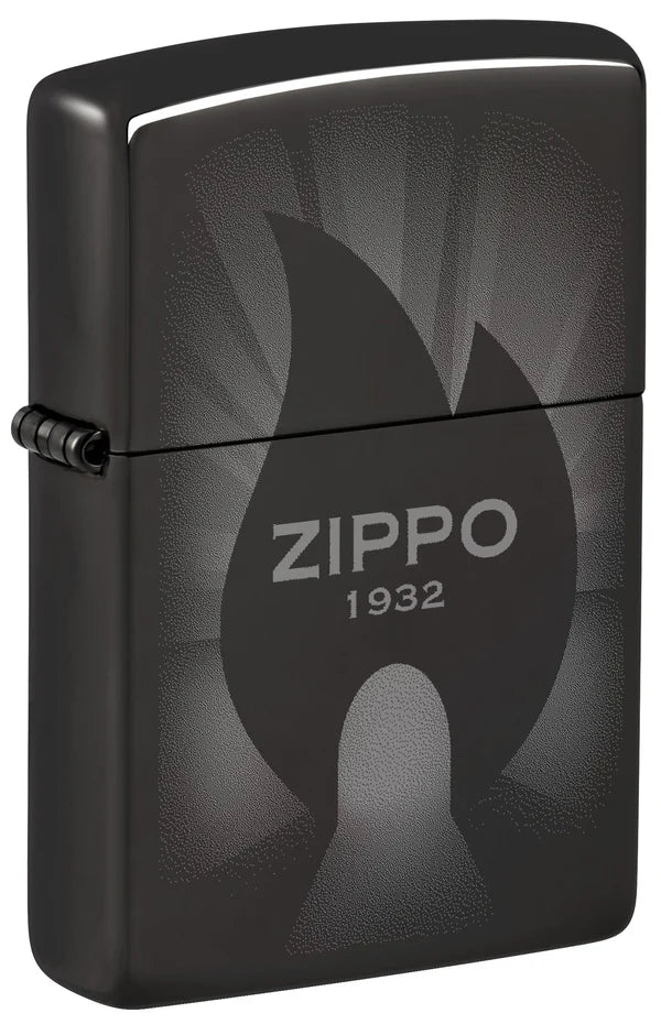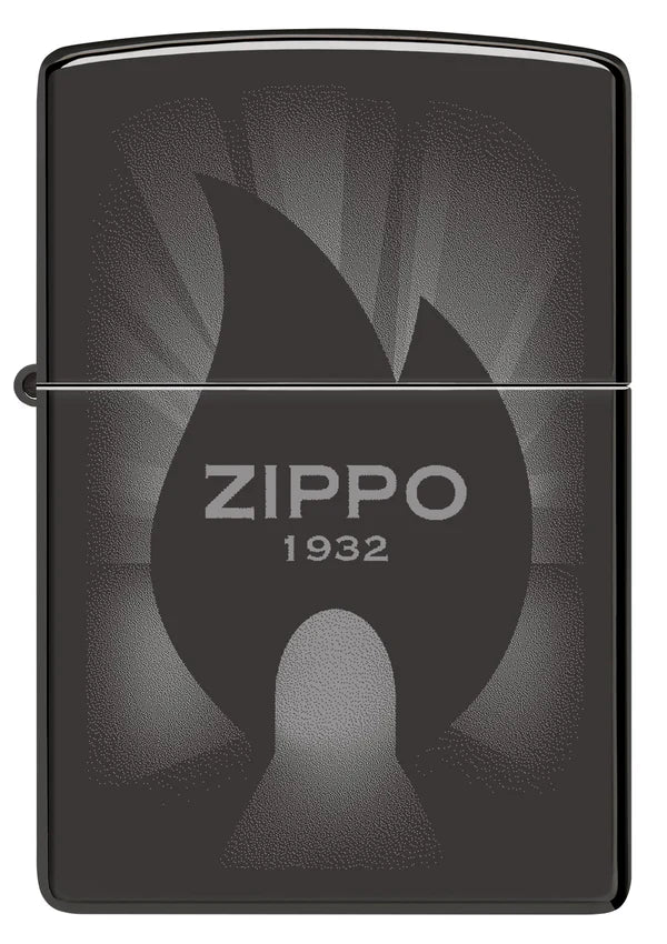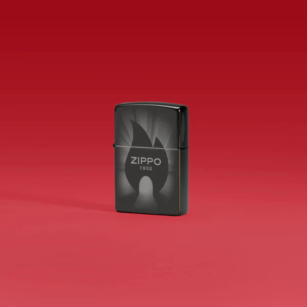 A Zippo láng ikonja kerül a középpontba ezen a fényes, magasfényű fekete öngyújtón, füstös fotónyomtatott dizájnnal, kiegészítve a Zippo logóval és az alapítás évével. Díszdobozba csomagolva érkezik. Az optimális teljesítmény érdekében töltse fel Zippo öngyújtó töltőfolyadékkal.
